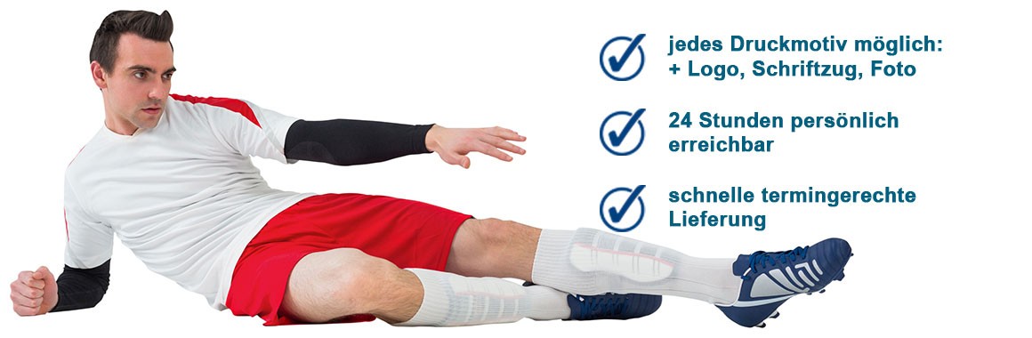 Sport-Zubehör von der Kapitänsbinde bis hin zum Schienbeinschonerhalter Wir individualisieren ihre Sportartikel, sodass ihr Verein auf dem Sportplatz einen einzigartigen Auftritt hat. Unsere Produkte kombinieren Ästhetik, höchste Qualität und ein besonderes Maß an Funktionalität. Unsere äußerst beliebten Kapitänsbinden haben nicht nur neue Standards in Sachen Stoffqualität gesetzt, sondern lassen sich sogar mit ihrem Vereinswappen oder Text veredeln.